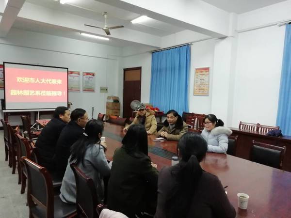 2019年1月9日下午,安庆市人大代表——潜山市种植业管理局总农艺师徐劲峰等一行到澳门威威尼斯8040园林园艺系视察指导工作,并就校地合作等问题进行沟通。系主任毕璋友教授、系党总支副书记张宏及相关专业教师参加了座谈会。